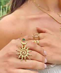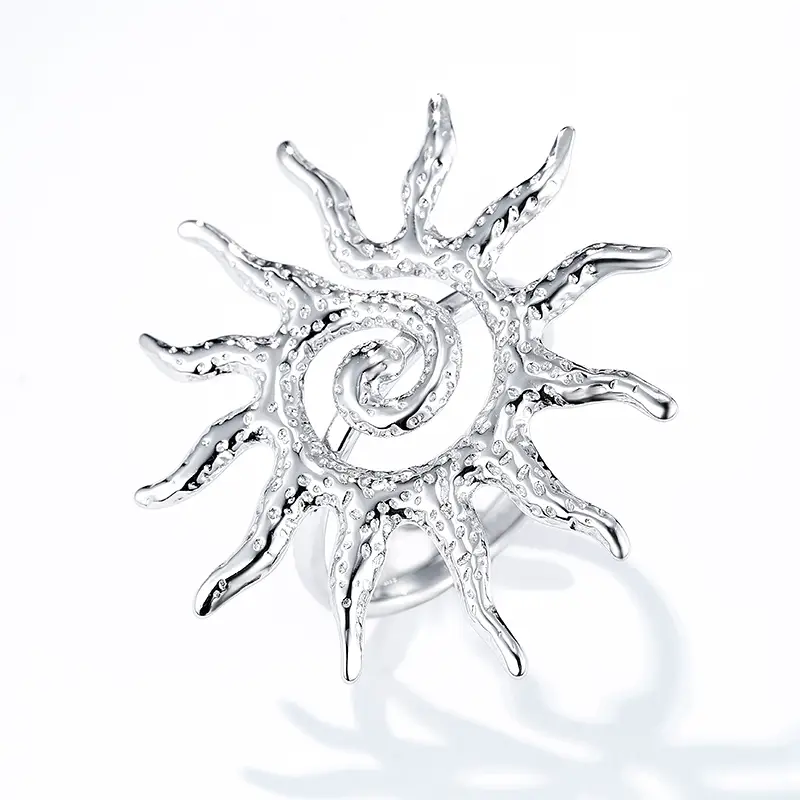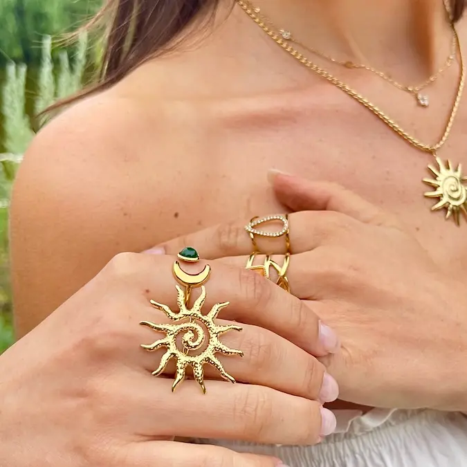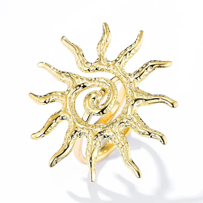 Bague Soleil en acier inoxydable. Résiste à l’eau et ne noircit pas. Garantie sans nickel, sans cadmium, sans sel de plomb.