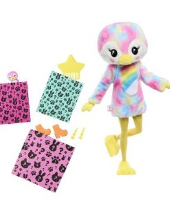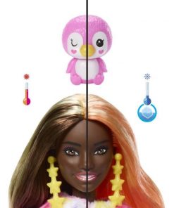 10 surprises sont a découvrir ! 1 Barbie, 2 changements de couleur, 1 déguisement de pingouin tout doux 2 en 1, 1 poussin et 4 accessoires.