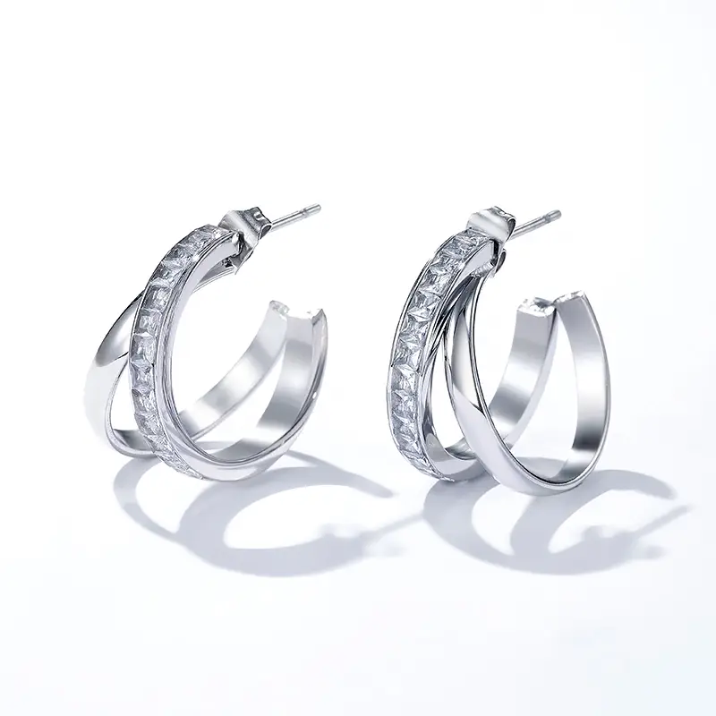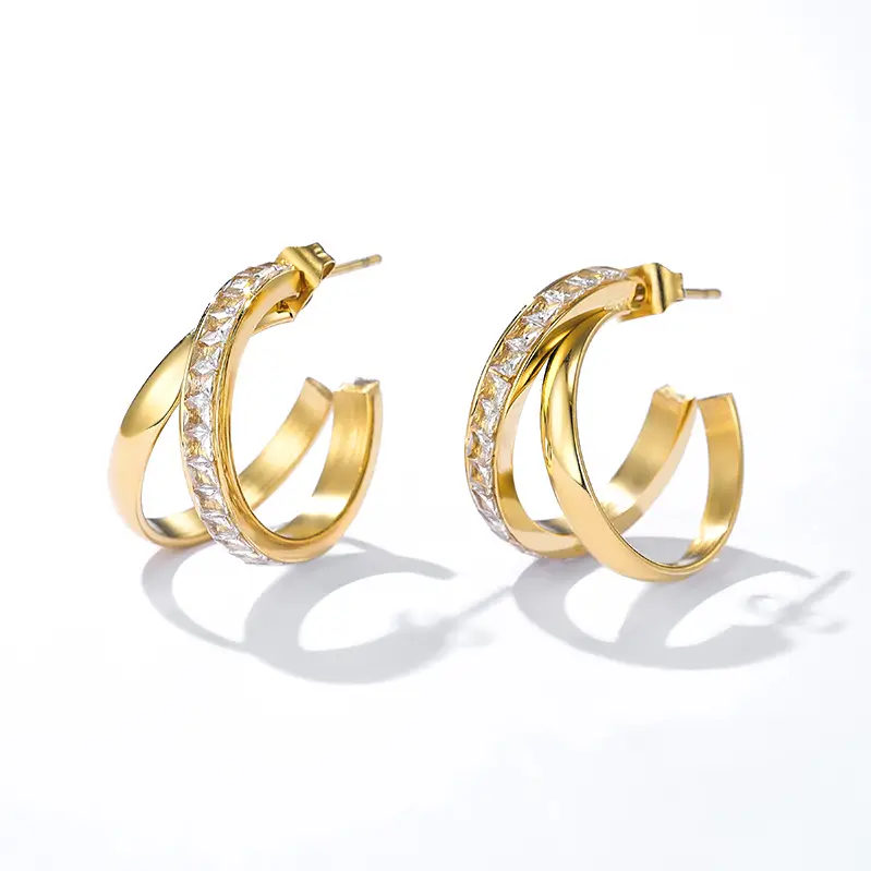 Boucles d’oreilles double cercle diamant en acier inoxydable