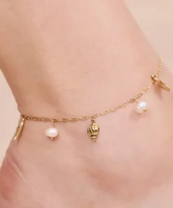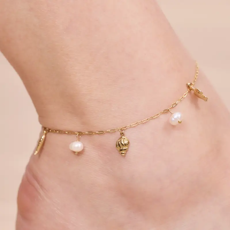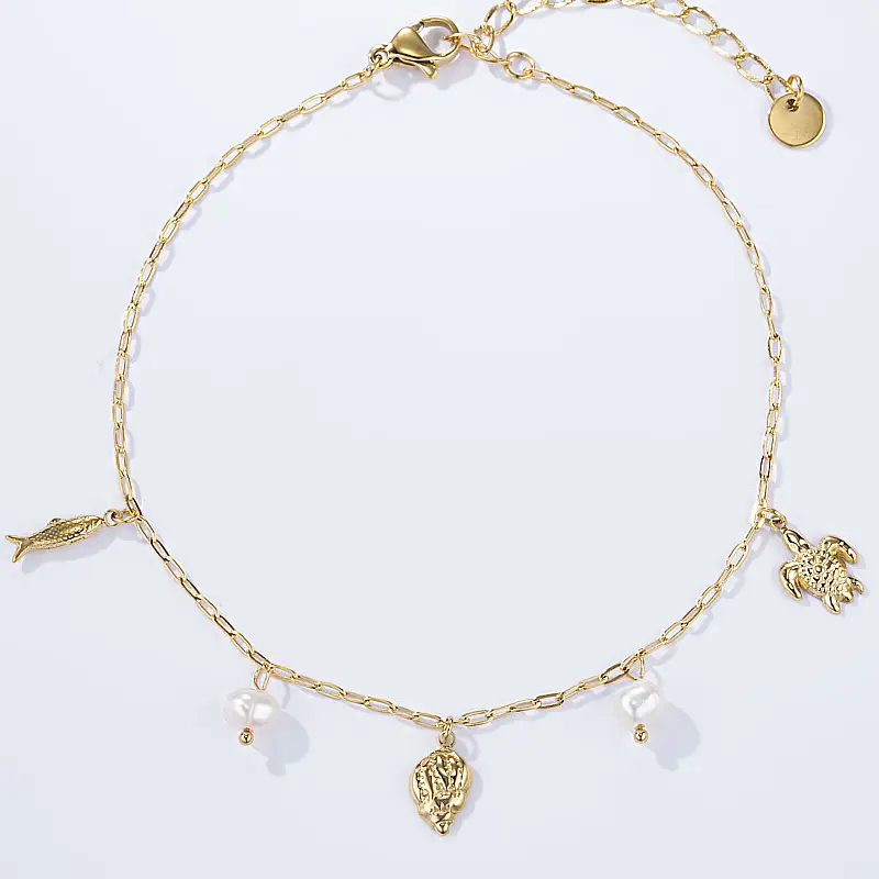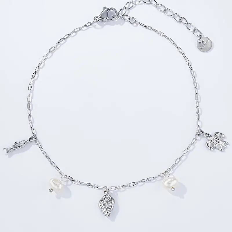 Chaîne de pied breloques en acier inoxydable. Résiste à l’eau et ne noircit pas. Garantie sans nickel, sans cadmium, sans sel de plomb.