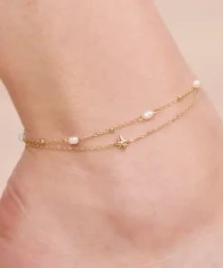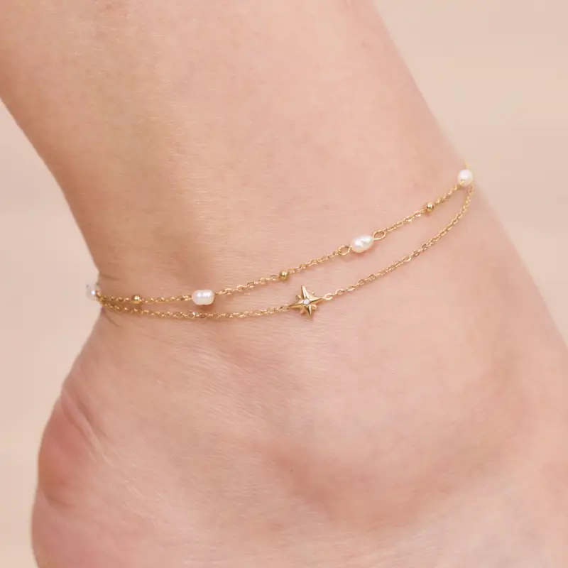 Chaîne de pied étoile en acier inoxydable. Résiste à l’eau et ne noircit pas. Garantie sans nickel, sans cadmium, sans sel de plomb.