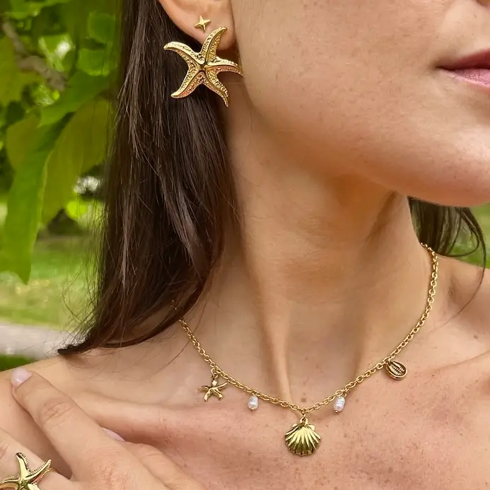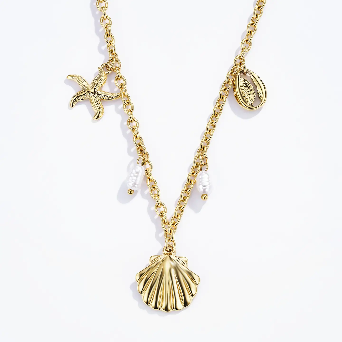Colliers coquillages en acier inoxydable. Résiste à l’eau et ne noircit pas. Garantie sans nickel, sans cadmium, sans sel de plomb.