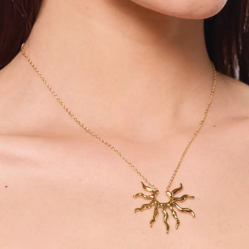 Collier Rayons de Soleil en acier inoxydable. Résiste à l’eau et ne noircit pas. Garantie sans nickel, sans cadmium, sans sel de plomb.