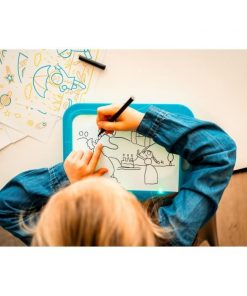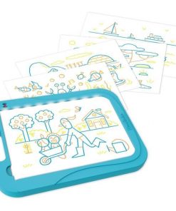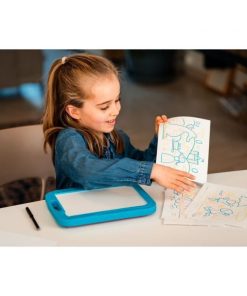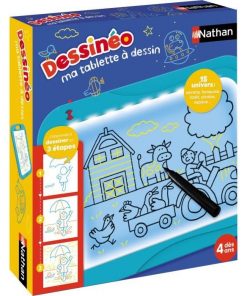 La tablette a dessin DESSINEO de NATHAN permet aux enfants des 4 ans d’apprendre a dessiner de maniere ludique. Grâce a un modele a suivre et un pupitre lumineux, ils créent facilement des oeuvres. Pratique et nomade, elle se transporte aisément et dispose d’un rangement pour les planches.