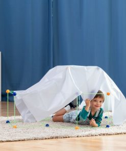 - Plusieurs constructions différentes : notre kit de construction de fort pour enfants permet de construire différents types de structures en reliant les billes et les bâtonnets : igloos, maisons, fusées, tentes et tipis, etc. De plus, la housse en tissu peut être placée sur le dessus pour compléter le bâtiment et permettre de s’abriter à l’intérieur.