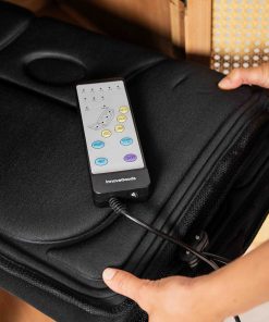 Cette tapis de massage corporel offre 5 modes de massage, 3 niveaux d’intensité, fonction chaleur lombaire, 4 zones de massage, télécommande filaire et poche pour la télécommande. Très confortable grâce à son épaisseur de 3 cm et son design ergonomique qui épouse les contours du corps.