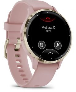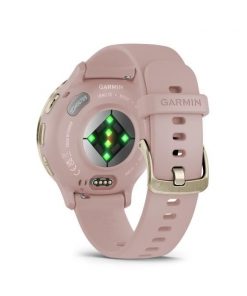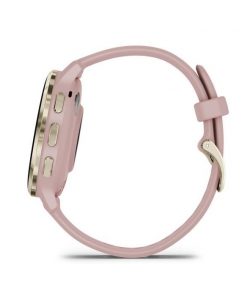 Montre GPS connectée – GARMIN – Venu 3S – 30,4mm (1,2) – Acier Soft Gold, boîtier rose et bracelet en silicone rose