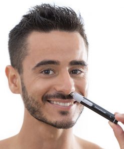 Une tondeuse pour nez et oreilles avec un design moderne, ergonomique et compact, elle est idéale pour couper et éliminer les poils inesthétiques du nez et des oreilles. En plus, elle est sans fil, car elle fonctionne avec une pile AAA (non fournie), pas besoin de fils encombrants ni de prises. Elle est de petit format et discrète, donc elle est super facile à transporter et à ranger n’importe où, elle prend très peu de place. Cette minitondeuse de poils de précision vous permet d’aller vers les zones les plus difficiles d’accès. Une de ses caractéristiques principales est d’être complètement indolore, car elle ne tire pas les poils à la racine, elle coupe les zones les plus sensibles sans provoquer de lésions et sans faire mal. Elle dispose d’un seul bouton onoff, elle est très simple d’utilisation. Elle marche par système de coupe circulaire, il faut juste quelques légers mouvements à l’intérieur du nez et des oreilles et répéter l’opération jusqu’à ce que les poils disparaissent. La tête est démontable pour faciliter le nettoyage. Un capot de protection est inclus pour protéger la lame de manière sécurisée. Une petite brosse de nettoyage est fournie.