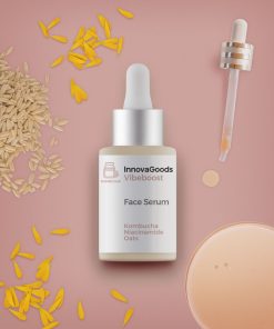 - Principaux bénéfices : Le sérum visage Vibeboost InnovaGoods Kombucha revitalise, hydrate, apaise, protège, tonifie et renforce l’uniformité, la fermeté et l’élasticité de la peau.