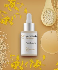 - Principaux bienfaits : le sérum visage Joyboost InnovaGoods Rice contient une forte concentration de principes actifs. Il agit comme un revitalisant et un illuminateur, en améliorant l’uniformité et l’élasticité de la peau.