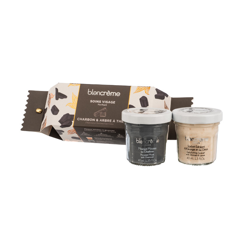 Ce cracker Blancrème est garni d’une routine soin visage à faire une fois par semaine. Le sorbet exfoliant à l’orange et au citron, permet de faire une double exfoliation de la peau. Et le masque visage à la texture mousse aérienne permet de faire un soin purifiant et détoxifiant. Ses actifs de charbon de Bincho-Tan et d’huile essentielle d’arbre à thé absorbent les impuretés et laissent la peau détoxifiée. Ce petit duo soins visage plaira à coup sûr !